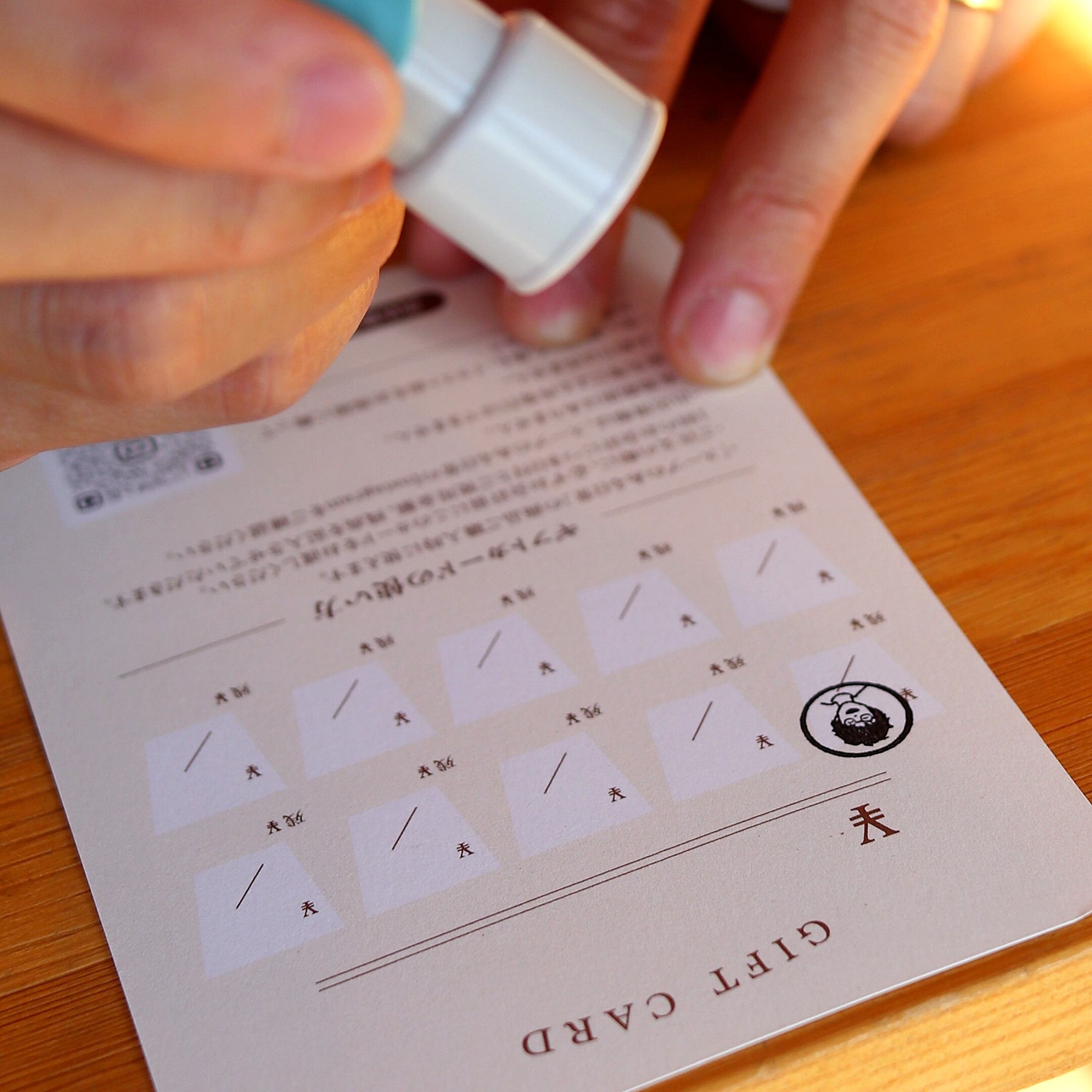 購入時に残額から使用額を差し引いた金額を店主が記入しスタンプでチェック致します。